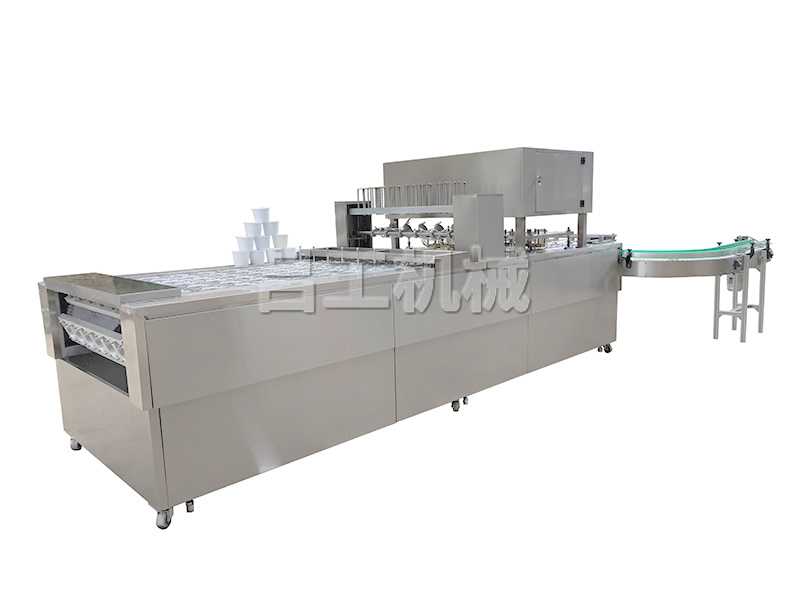 本機(jī)采用合理的機(jī)械傳動,功能齊全,灌裝、封口、切邊、制品推出,廢料收卷,印碼等自動化工作,可節(jié)約人力,降低成本。本機(jī)有二次熱封裝置,料杯/碗/盒與封膜經(jīng)過前后二次熱封,封口牢固可靠。