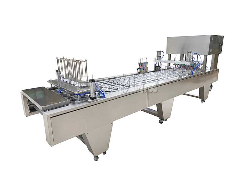 基本功能:單排鋁合金耐酸鋁模具。自動落杯-自動熱壓封口-自動切膜-自動頂推出杯。